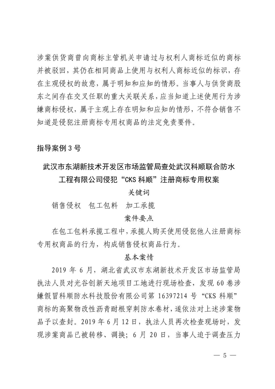 为深入贯彻落实中央关于全面加强知识产权保护工作的决策部署,统一执法标准,提高办案水平,加强知识产权行政执法业务指导工作,经审定,现发布第一批知识产权行政执法指导案例(指导案例1—5号),请在具体工作中参考。